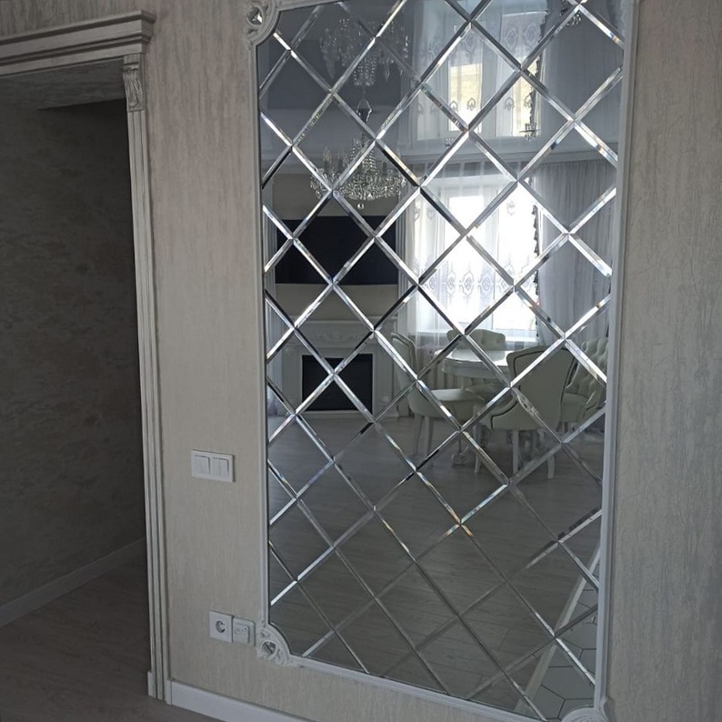 Использована серебристая зеркальная плитка "вытянутый ромб".